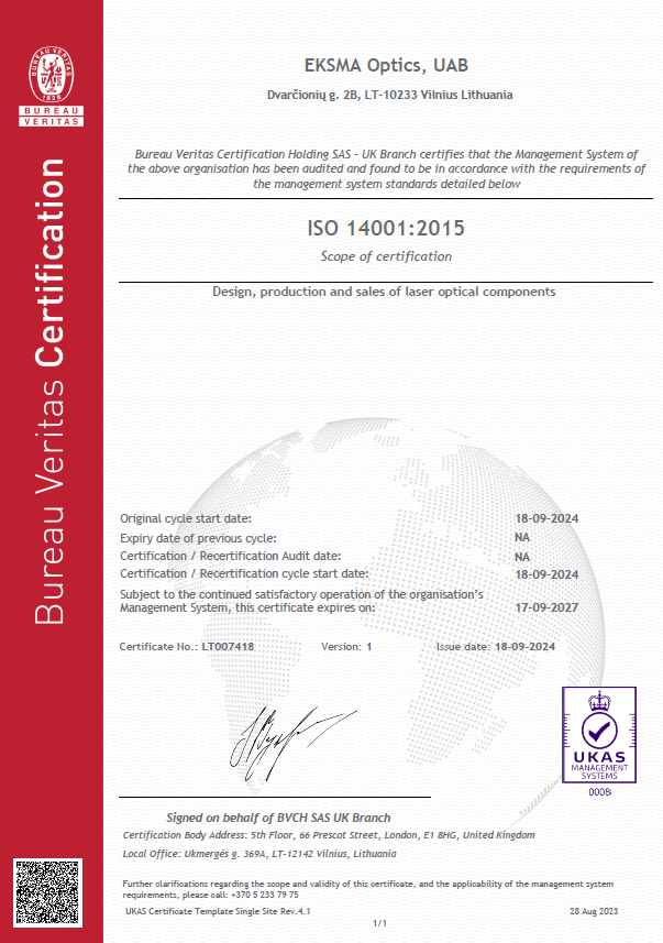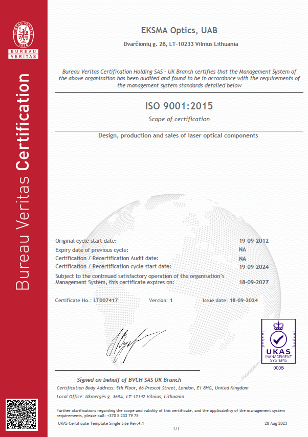 EKSMA Optics has been built on the long term of expertise in the laser and optics fields. Starting the first activities in 1983 developing of the opto-mechanical components for scientific laboratories later in 1990 the company has started sales and marketing of optical components dedicated to laser applications, nonlinear and laser media crystals. Along with additional investments into manufacturing capabilities EKSMA Optics currently expanded its product portfolio with electro-optical modulators – Pockels cells and their high voltage drivers, high voltage power supplies, timing generators for precise synchronization of laser components or entire laser systems, pulse picking systems for ultrafast lasers, laser diode drivers.